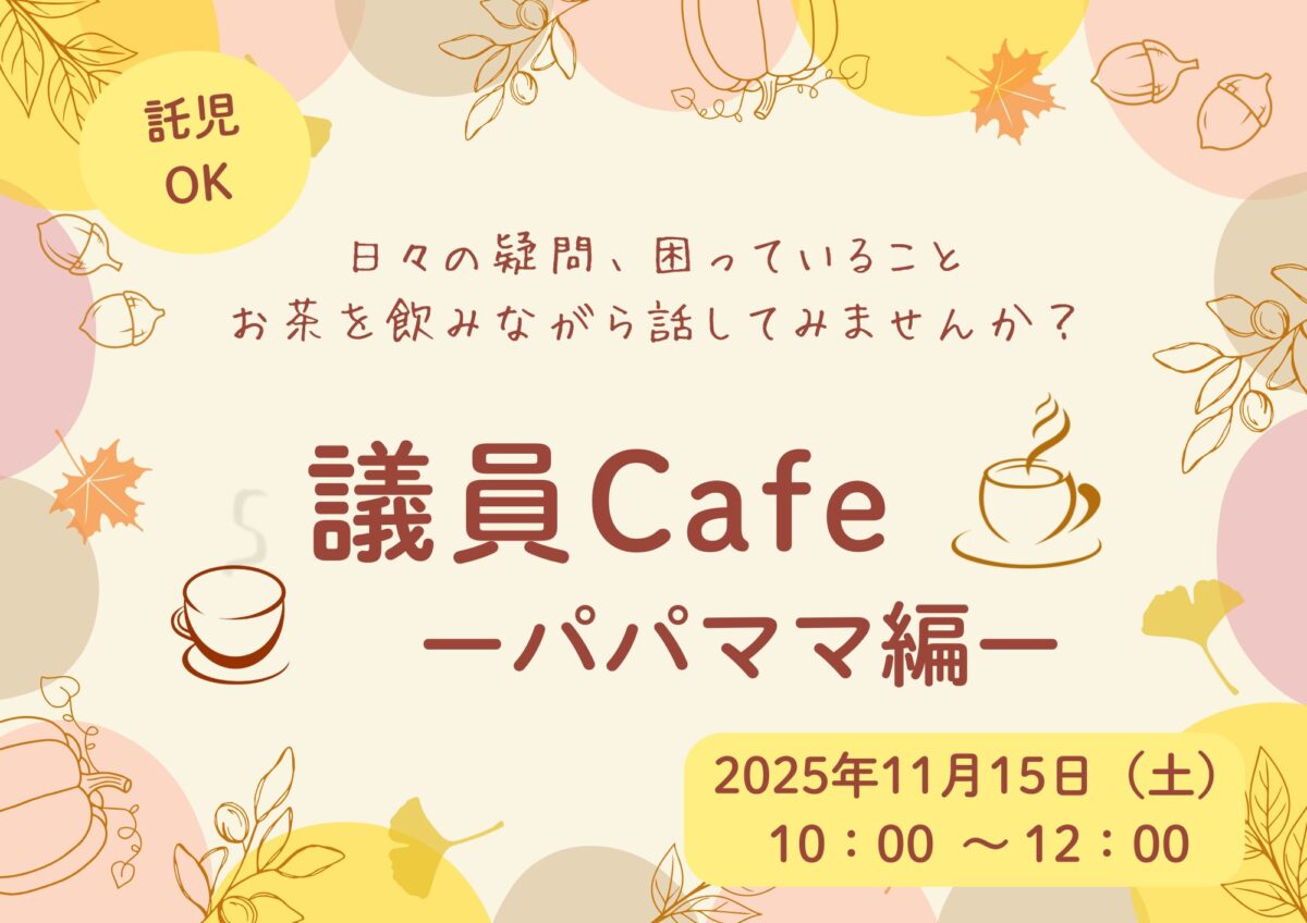 日々の疑問、困っていることお茶を飲みながら話してみませんか?【議員Cafeーパパママ編ー】