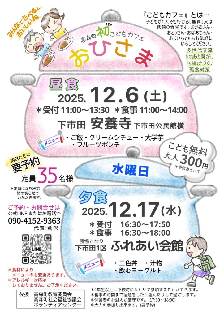 こどもカフェ おひさまが開催されます【昼食 12/6】【夕食 12/17】
