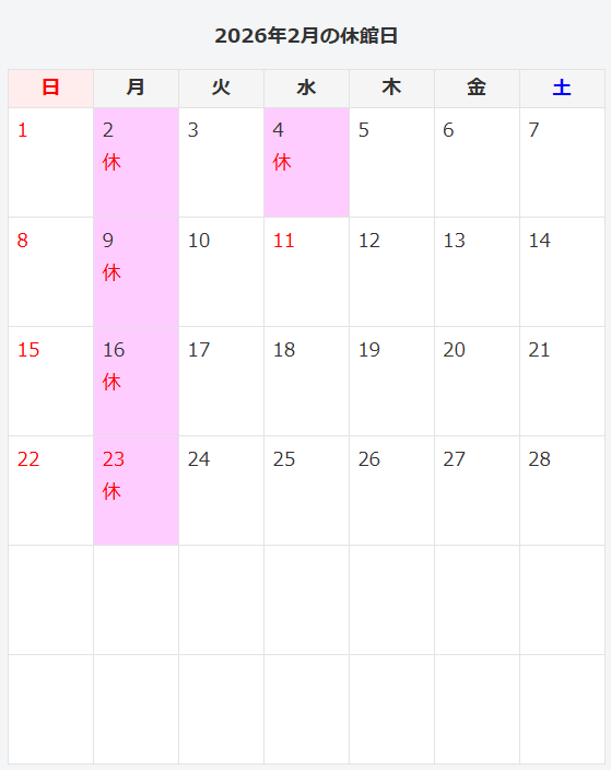 2026年2月のとしょかんのおたのしみ会の予定はこちらです。
