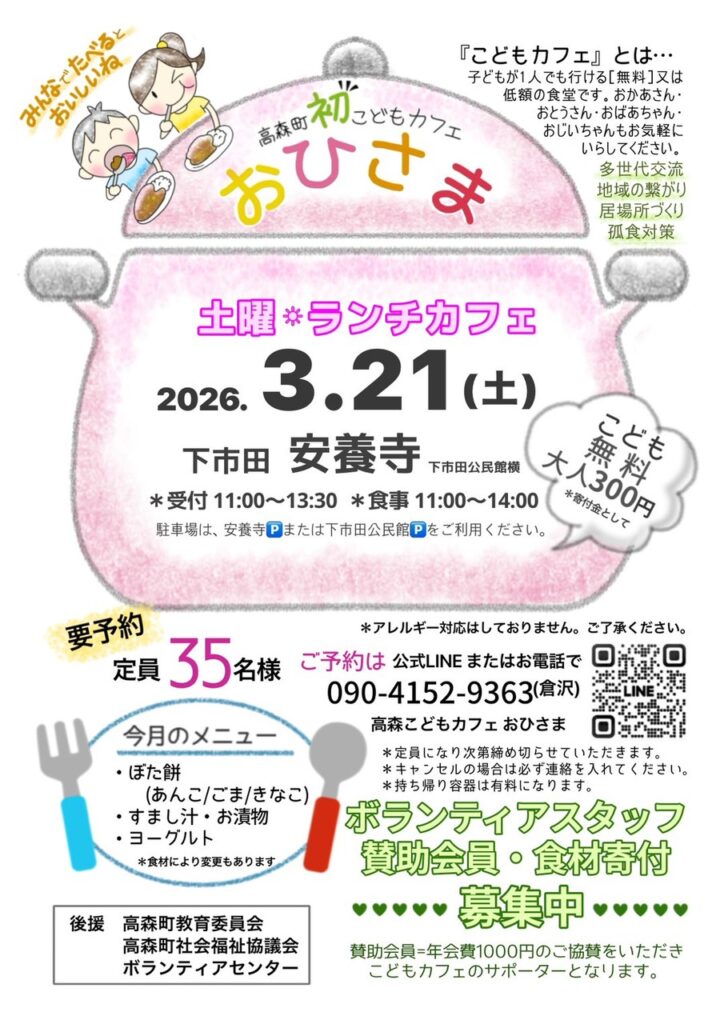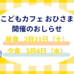 こどもカフェ おひさまが開催されます【昼食 3/21】