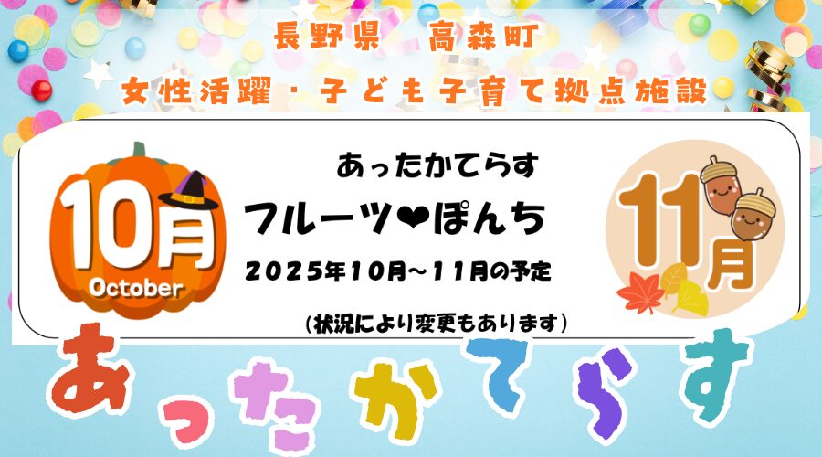 あったかてらす「フルーツ♡ぽんち」2025年10月~2025年11月の予定(長野県・高森町子育て支援施設)