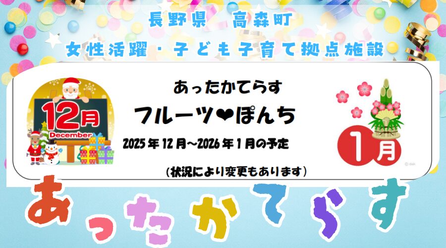 あったかてらす「フルーツ♡ぽんち」2025年12月~2026年1月の予定(長野県・高森町子育て支援施設)